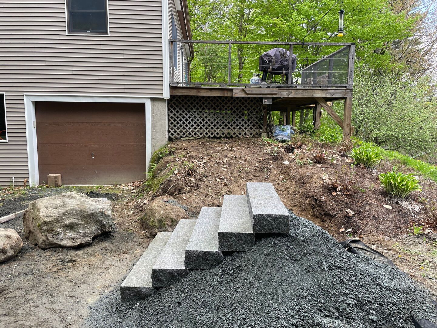 Natural Stone Landing with Granite & Bluestone - Sunapee, NH
